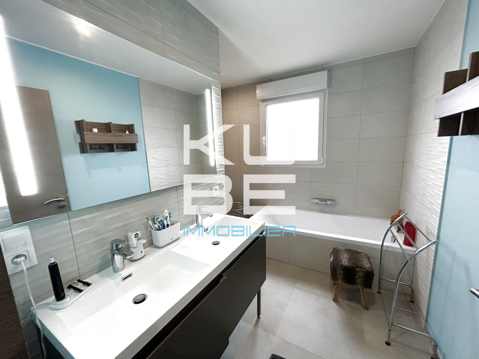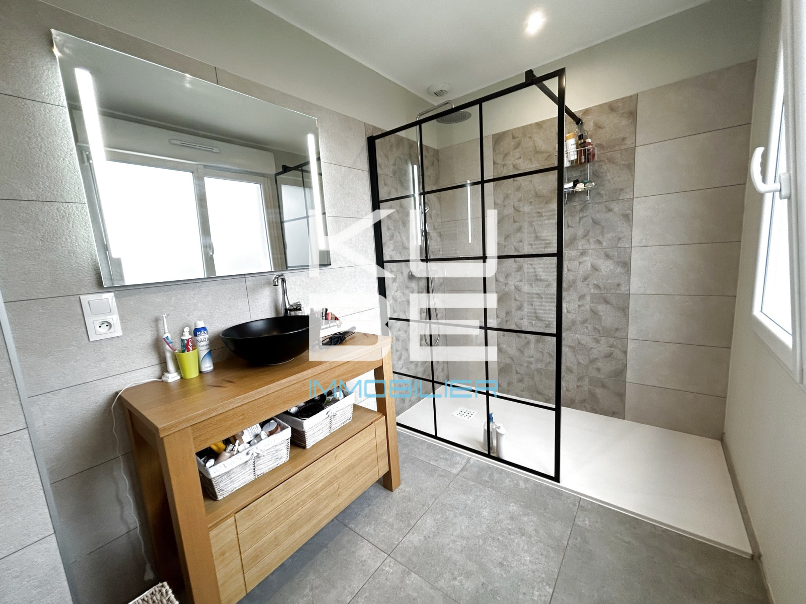 -A l'étage, 3 grandes chambres de respectivement 11,40m² avec espace penderie intégré, un wc, une salle de bain avec douche et meuble double vasque ainsi qu'une suite parentale de 20m² avec son dressing et sa salle d'eau .