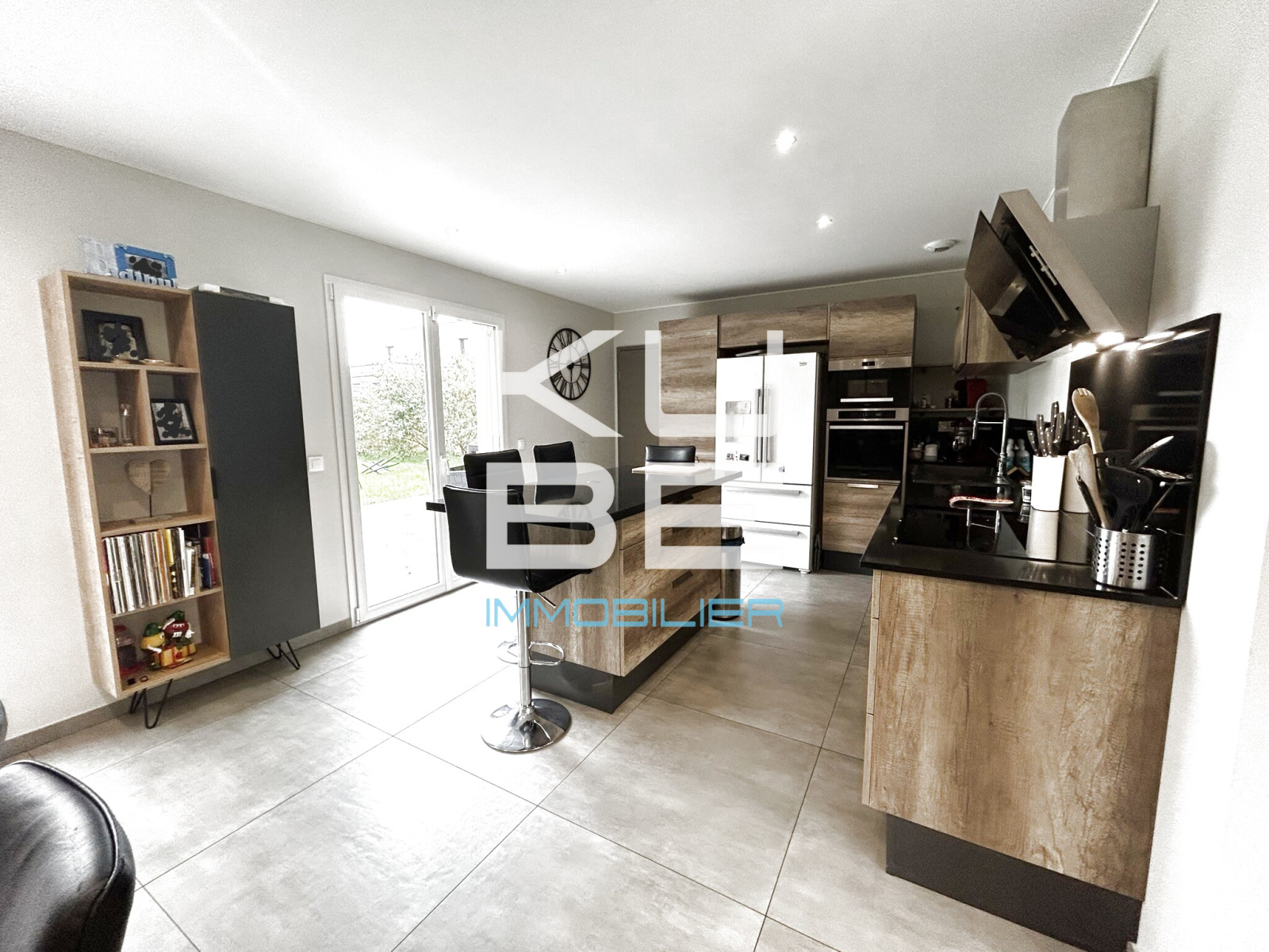Une cuisine équipée de type contemporaine avec accès direct sur la terrasse extérieure. La grande pièce de vie est modulable à souhait permettant de faire de grand repas de famille.