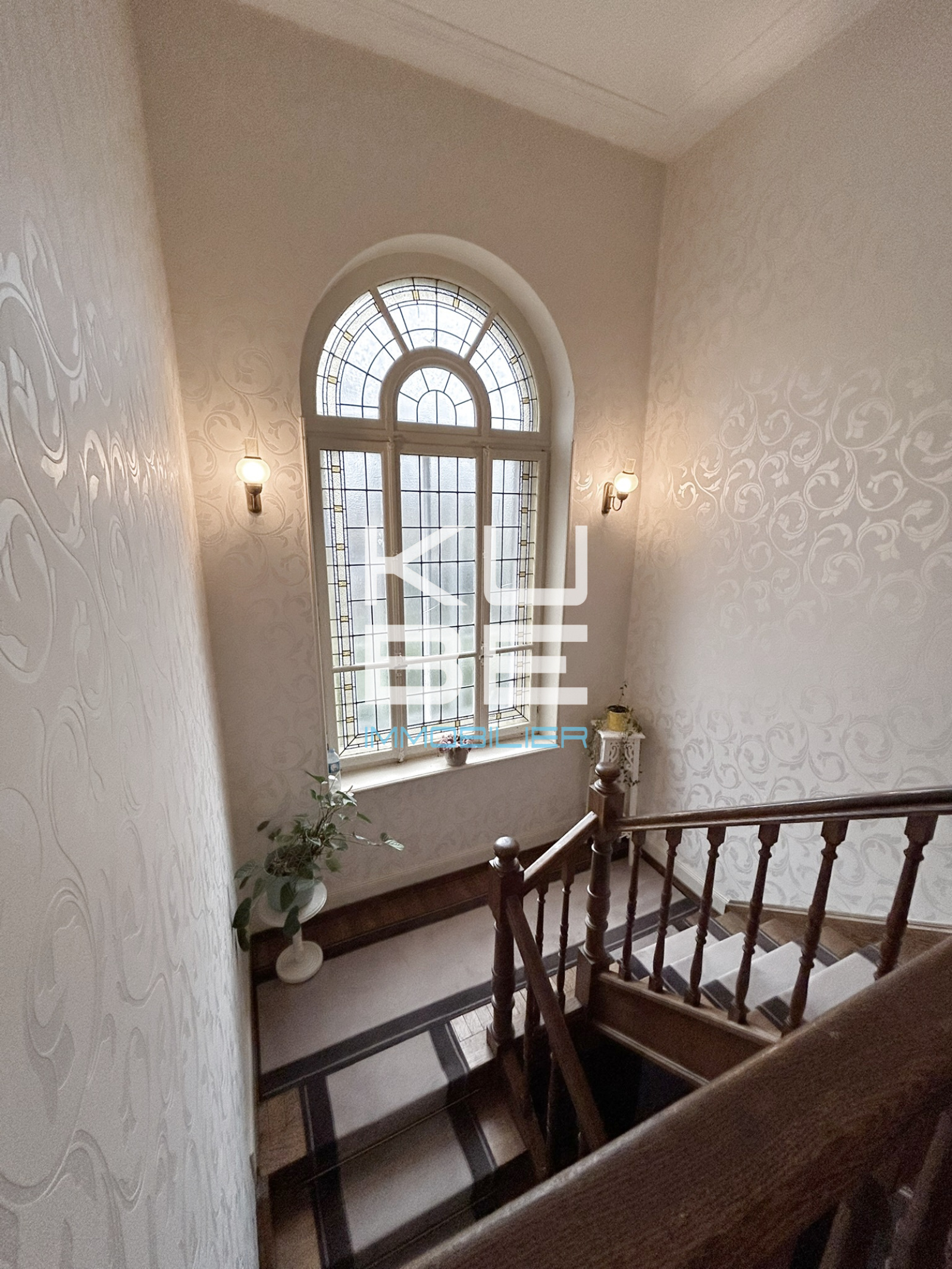 Un majestueux escalier central dessert les étages, complété par un escalier de service, autrefois destiné au personnel.