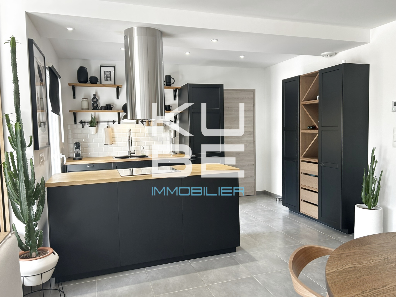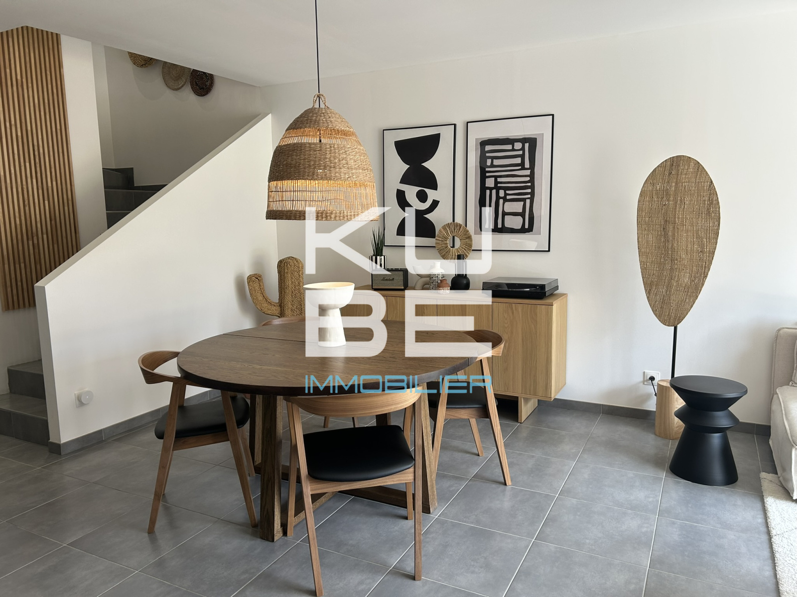Au rez-de-chaussée, vous trouverez une belle entrée avec placards et rangements, une buanderie, un WC, ainsi qu'une charmante pièce de vie salon séjour cuisine avec accès direct terrasse.