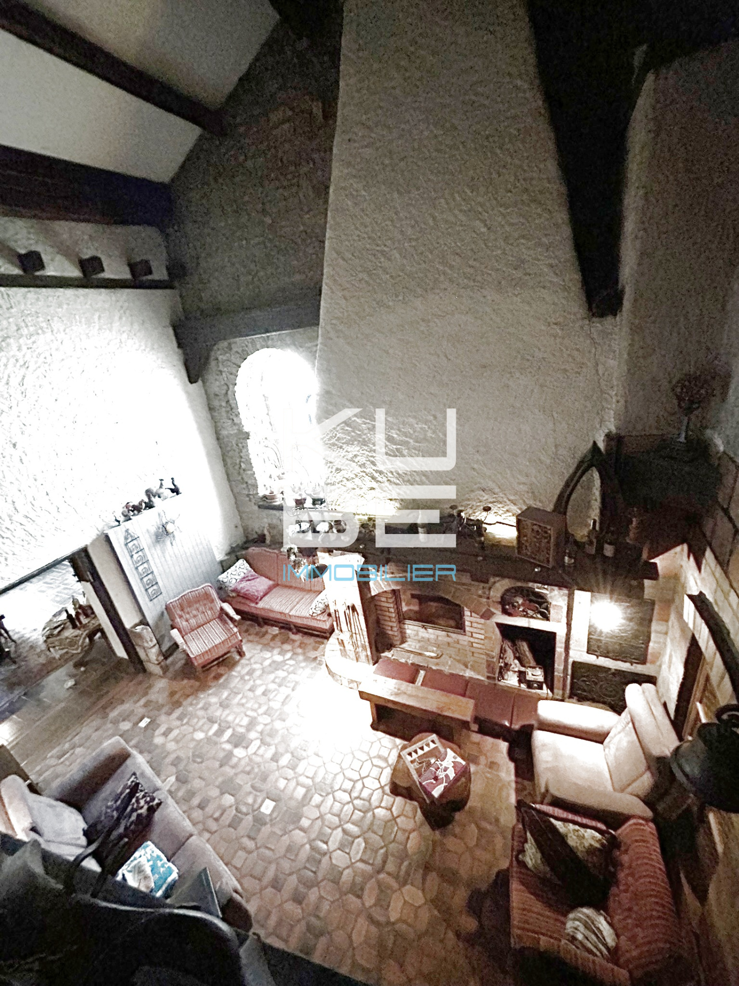 Une mezzanine de 20 m² ouverte sur la cheminée, créant un espace convivial,